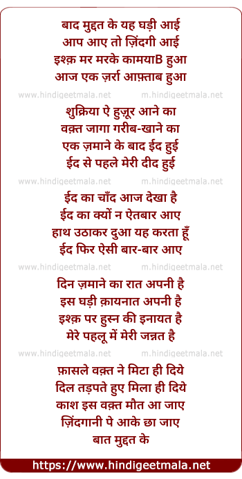 Lyrics of Baad Muddat Ke Ye Ghadi Aayee - बाद मुद्दत के यह घड़ी आई