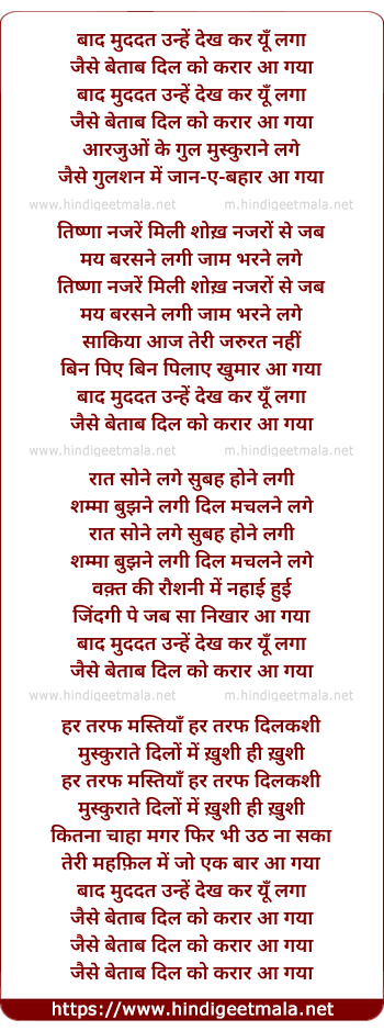 Lyrics of Baad Muddat Unhe Dekh Kar - बाद मुददत उन्हें देख कर यूँ लगा