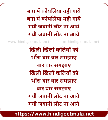 Lyrics of Baagh Mein Koyaliya Yahi Gaaye - II - बाग़ में कोयलिया यही गाये
