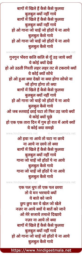 Lyrics of Baago Me Khile Hai Kaise Kaise Phulwa - बागों में खिले हैं कैसे कैसे फुलवा