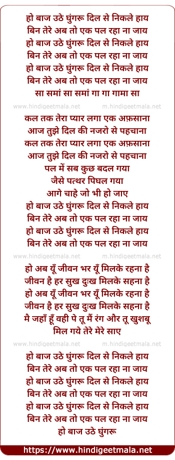 Lyrics of Baaj Uthe Ghungru, Dil Se Nikle Haye - बाज उठे घुंगरू, दिल से निकले हाय