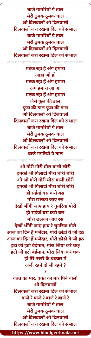Lyrics of Baaje Gagariyon Pe Taal - बाजे गागरियों पे ताल