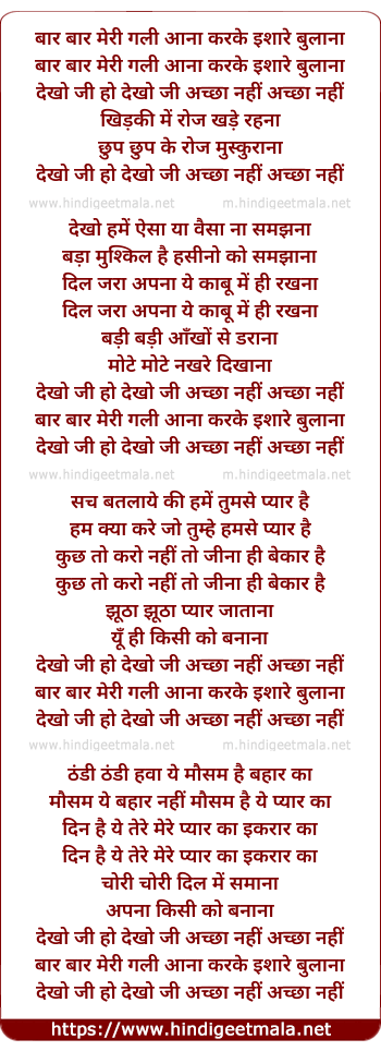 Lyrics of Baar Baar Meri Gali Aana Karke - बार बार मेरी गली आना करके