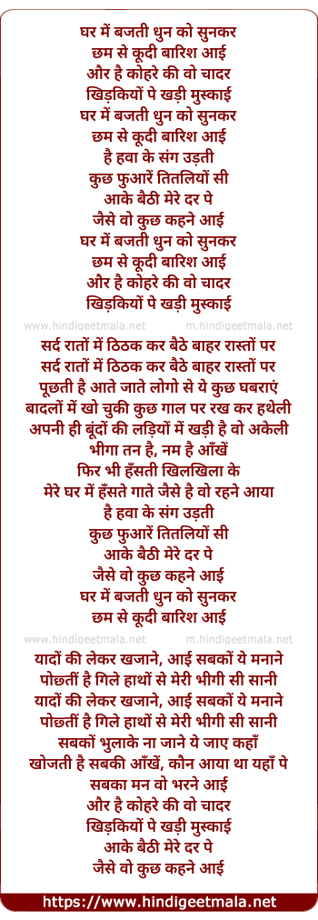 Lyrics of Baarish Ghar Mein Bajati Dhun Ko Sunkar - बारिश घर में बजती धुन को सुनकर