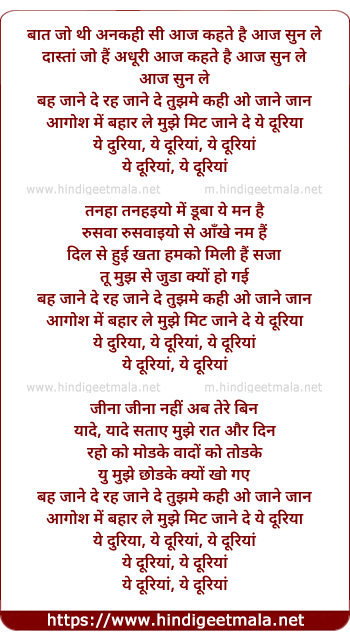 aagosh me bhar le mujhe mit jane de ye duriya