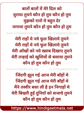 Lyrics of Baato Baato Me Mere Dil Ko Churaya - बातों बातों में मेरे दिल को चुराया