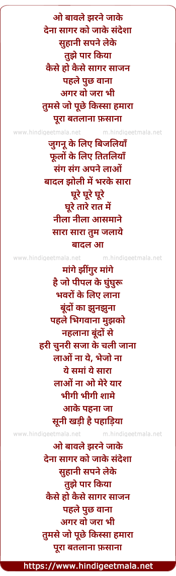 Lyrics of Baavle Jharne - ओ बावले झरने जाके