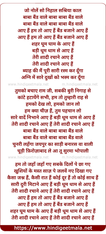 Lyrics of Baba Band Wale Baba - बाबा बैंड वाले बाबा