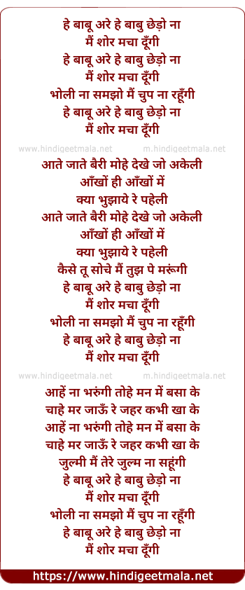 Lyrics of Babu Chhedo Na - बाबु छेड़ो ना