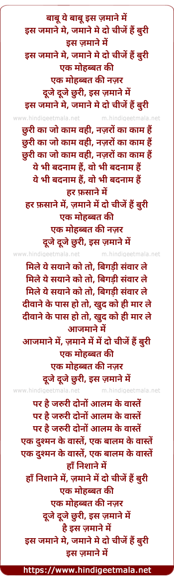 Lyrics of Babu Re Babu Is Zamane - बाबू ये बाबू इस ज़माने
