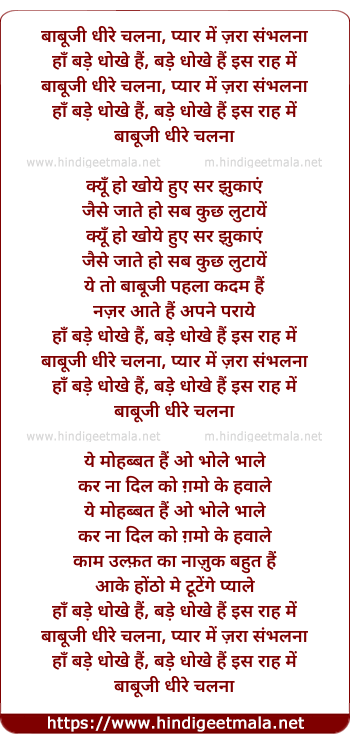 Lyrics of Babuji Dhire Chalna - बाबूजी धीरे चलना, प्यार में ज़रा संभलना