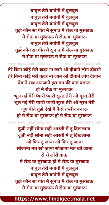 Lyrics of Babul Tere Bagangi Main Bul Bul - बाबुल तेरी बगांगी मैं बुलबुल
