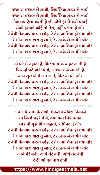 Lyrics of Baby Makeup Karna Chod - मस्कारा मस्कट से लायी, लिपस्टिक लंडन से लायी