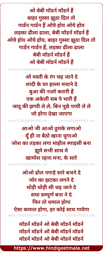 Lyrics of Baby Modern Modern - बेबी मॉडर्न मॉडर्न