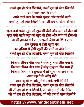 Lyrics of Bachcho Tum Ho Khel Khilone - बच्चों तुम हो खेल खिलोने
