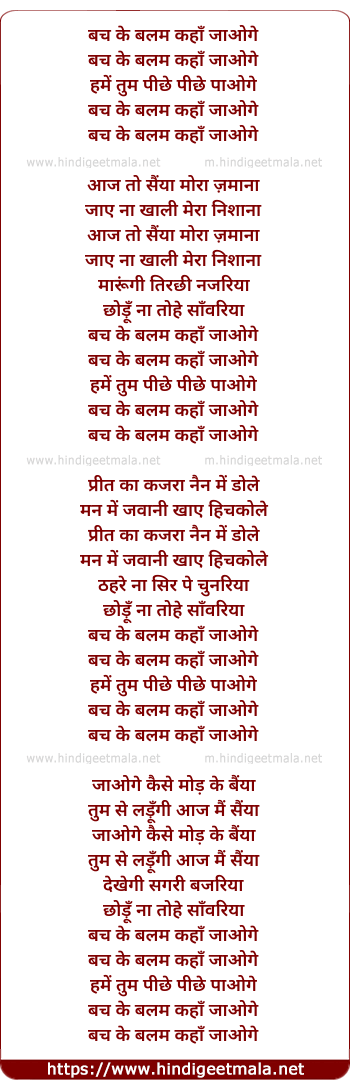 Lyrics of Bach Ke Balam Kahan Jaoge - बच के बलम कहाँ जाओगे