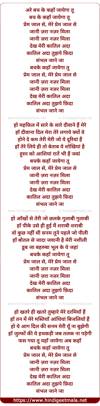 Lyrics of Bach Ke Kaha Jaaoge - अरे बच के कहाँ जायेगा तू