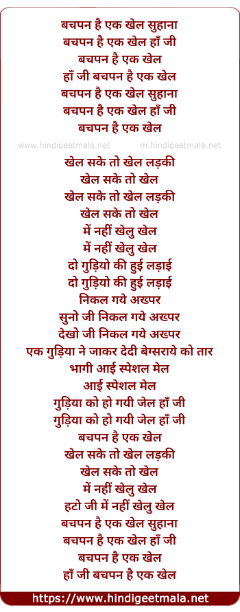 Lyrics of Bachpan Hai Ek Khel Suhana - बचपन है एक खेल सुहाना
