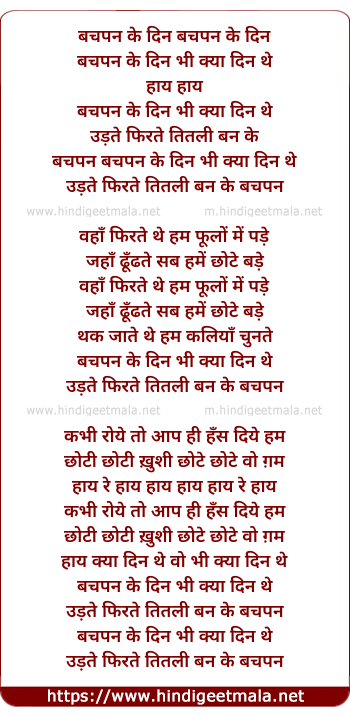 Lyrics of Bachpan Ke Din Bhi Kya Din The - बचपन के दिन बचपन के दिन