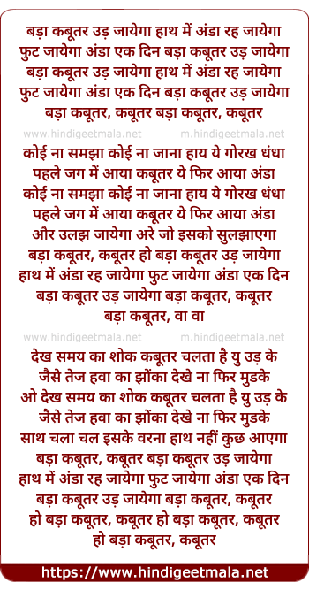 Lyrics of Badaa Kabutar Ud Jayega - बड़ा कबूतर उड़ जायेगा