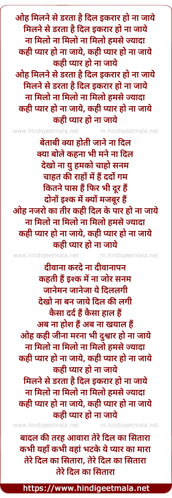 Lyrics of Kahi Pyar Ho Naa Jaye - कही प्यार हो ना जाये