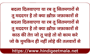 Lyrics of Badala Dilawaaega Ya Rab Tu Sitamagaaron Se - बदला दिलवायेगा या रब तू सितमगारों से