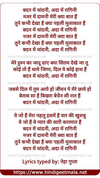 Lyrics of Badan Mein Chandni Ada Mein Ragini - बदन में चांदनी, अदा में रागिनी