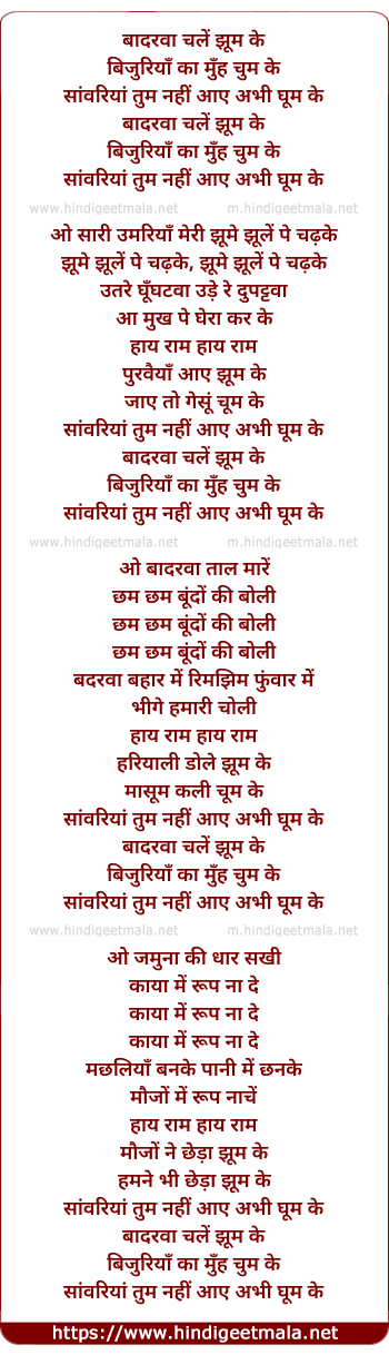 Lyrics of Badarwaa Chale Jhum Ke - बादरवा चलें झूम के