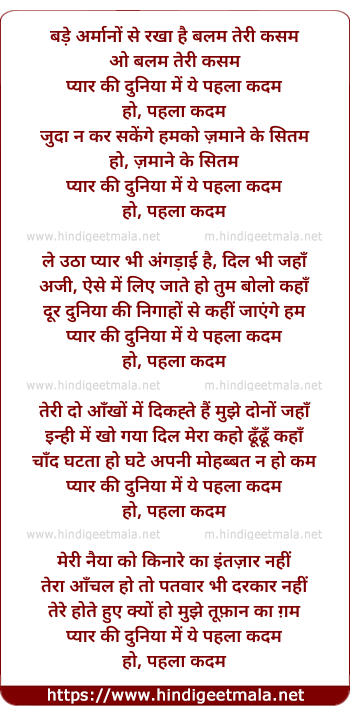 बड़े अर्मानों से रखा है बलम तेरी कसम ..प्यार की दुनिया में ये पहला कदम, ..