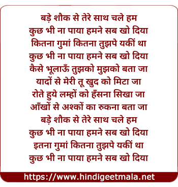 Lyrics of Bade Shauk Se - बड़े शौक से तेरे साथ चले हम