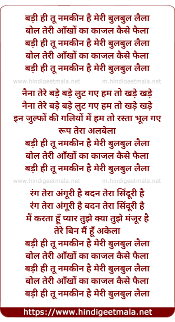 Lyrics of Badi Hi Tu Namkin Hai Meri Bulbul - बड़ी ही तू नमकीन है मेरी बुलबुल