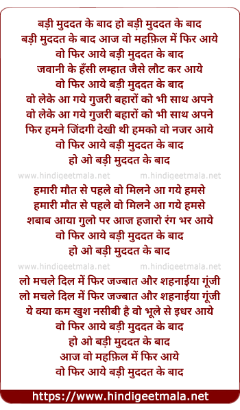 Poetic Translation - Lyrics of Badi Muddat Ke Baad Hui Aaj Mulakat - बड़ी मुददत के बाद हुई आज मुलाकात