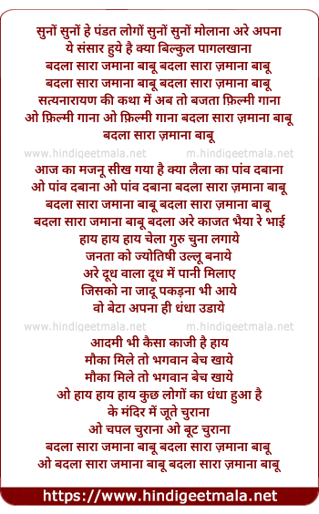 Lyrics of Badla Sara Zamana Babu - बदला सारा ज़माना बाबू