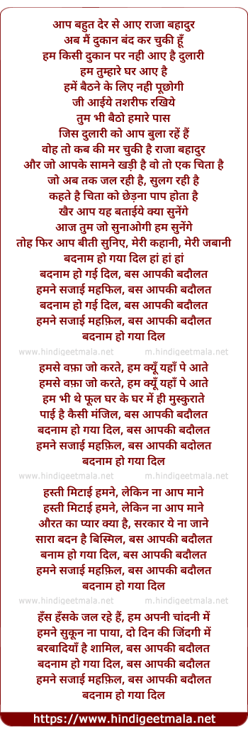 Lyrics of Badnaam Ho Gaya Dil - बदनाम हो गया दिल