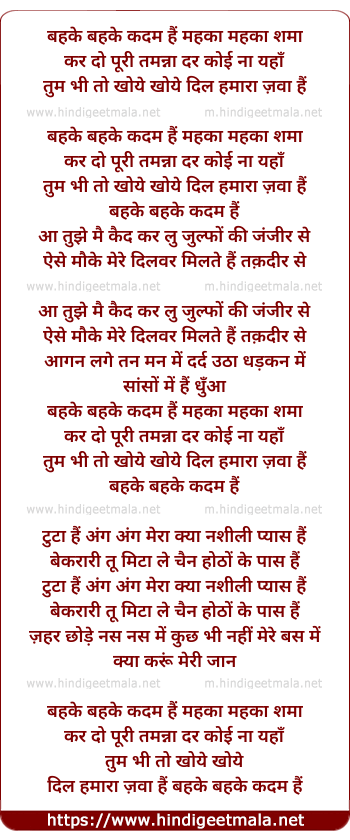 Lyrics of Bahke Bahke Kadam - बहके बहके कदम