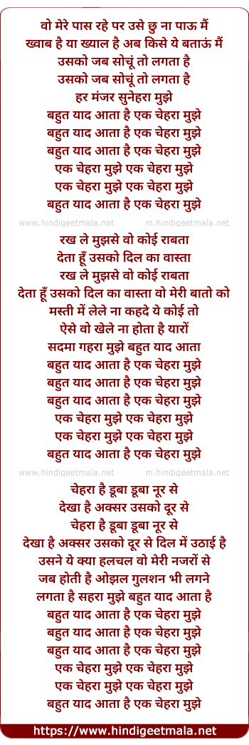 ek chehra mujhe ek chehra mujhe