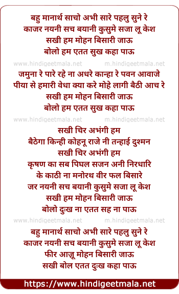 Lyrics of Bahu Manaratha Saccho Abhi Sare Pahlu Sune Re - बहु मानार्थ साचो अभी सारे पहलु सुने रे