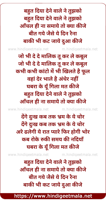 Lyrics of Bahut Diya Dene Wale Ne - बहुत दिया देने वाले ने