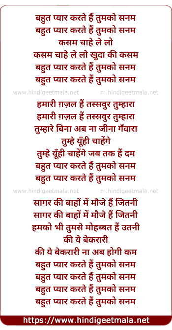 Lyrics of Bahut Pyaar Karte Hai - बहुत प्यार करते हैं तुमको सनम