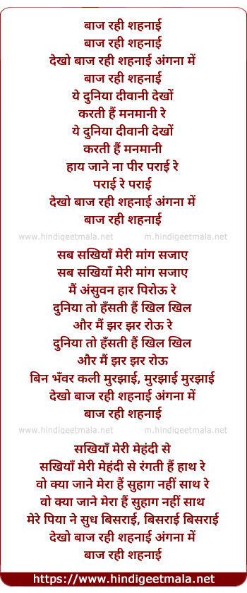 Lyrics of Baj Rahi Shehnai Dekho - बाज रही शहनाई देखो