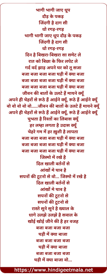 Lyrics of Baja Baja Baja Baja Ghadi Me Kya Baja - बजा बजा बजा बजा घड़ी में क्या बजा