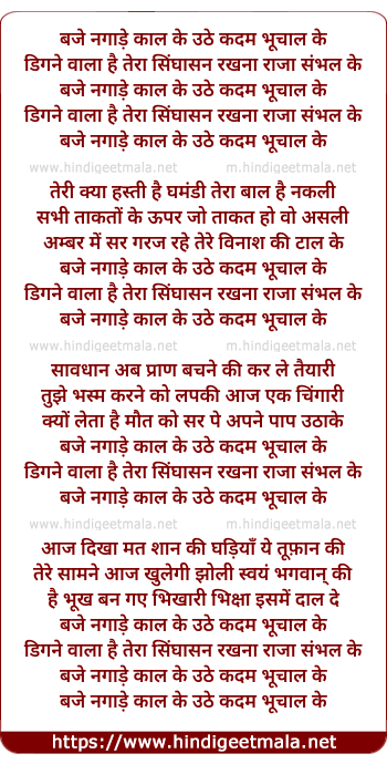 Lyrics of Baje Naghade Kaal Ke, Uthe Kadam Bhochaal Ke - बजे नगाड़े काल के, उठे कदम भूचाल के