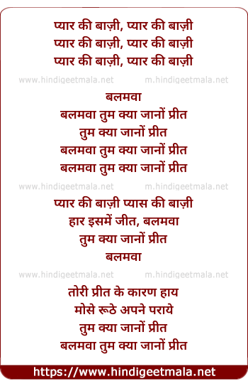Lyrics of Balamwa (Version 1) - प्यार की बाज़ी, प्यार की बाज़ी