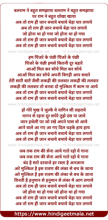 Lyrics of Balram Ne Bahut Samjhaya, Par Raam Ne Dhokha Khaya - बलराम ने बहुत समझाया, पर राम ने धोखा खाया