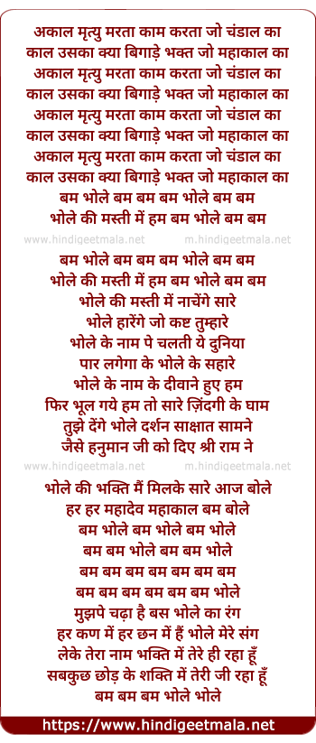 Lyrics of Bam Bhole Bam Bhole Ki Masti - बम भोले बम भोले की मस्ती