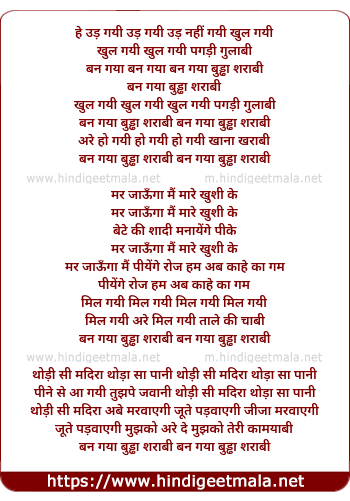 Lyrics of Ban Gayaa Buddha Sharabi - बन गया बुड्ढा शराबी