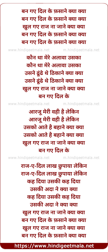 Lyrics of Ban Gaye Dil Ke Fasane - बन गए दिल के फ़साने क्या क्या
