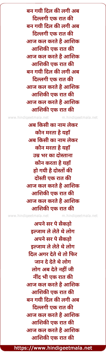 Lyrics of Ban Gayi Dil Ki Lagi - बन गयी दिल की लगी