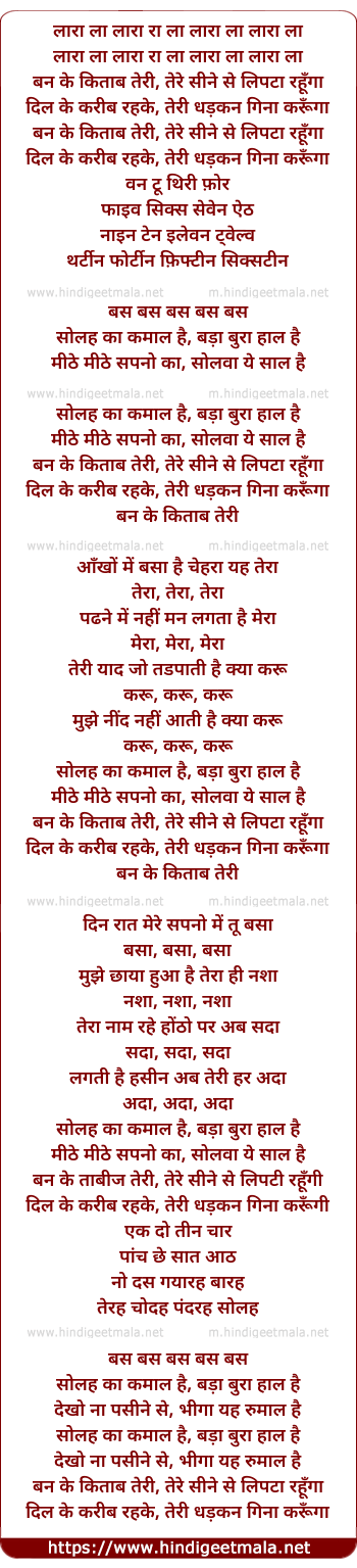 Lyrics of Ban Ke Kitab Teri Tere Sine - बन के किताब तेरी, तेरे सीने