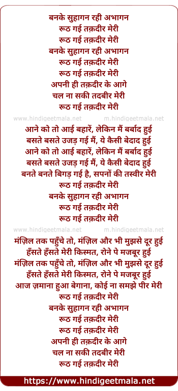 Lyrics of Ban Ke Suhagan Rahi Abhagan - बन के सुहागन रही अभागन